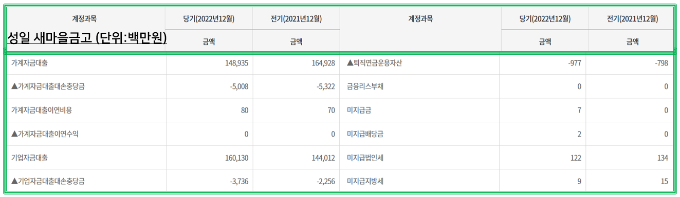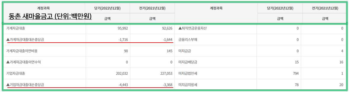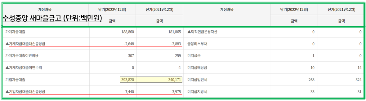 source : 국토교통부 새마을금고 재무제표를 찾아보려 했으나 지점별로 발표가 되어 있더군요. 그래서 대구지역에 한정해서 대손충담금 비중이 큰 새마을금고 데이터를 추려봤습니다. 대구 지역을 선택한 이유는 가장 미분양주택현황이 높게 나오는 지역이기 때문입니다. 그만큼 가계와 기업들 대출 영향력이 크게 나타날 수 있기 때문에 대구라는 지역을 한정했는데요.
