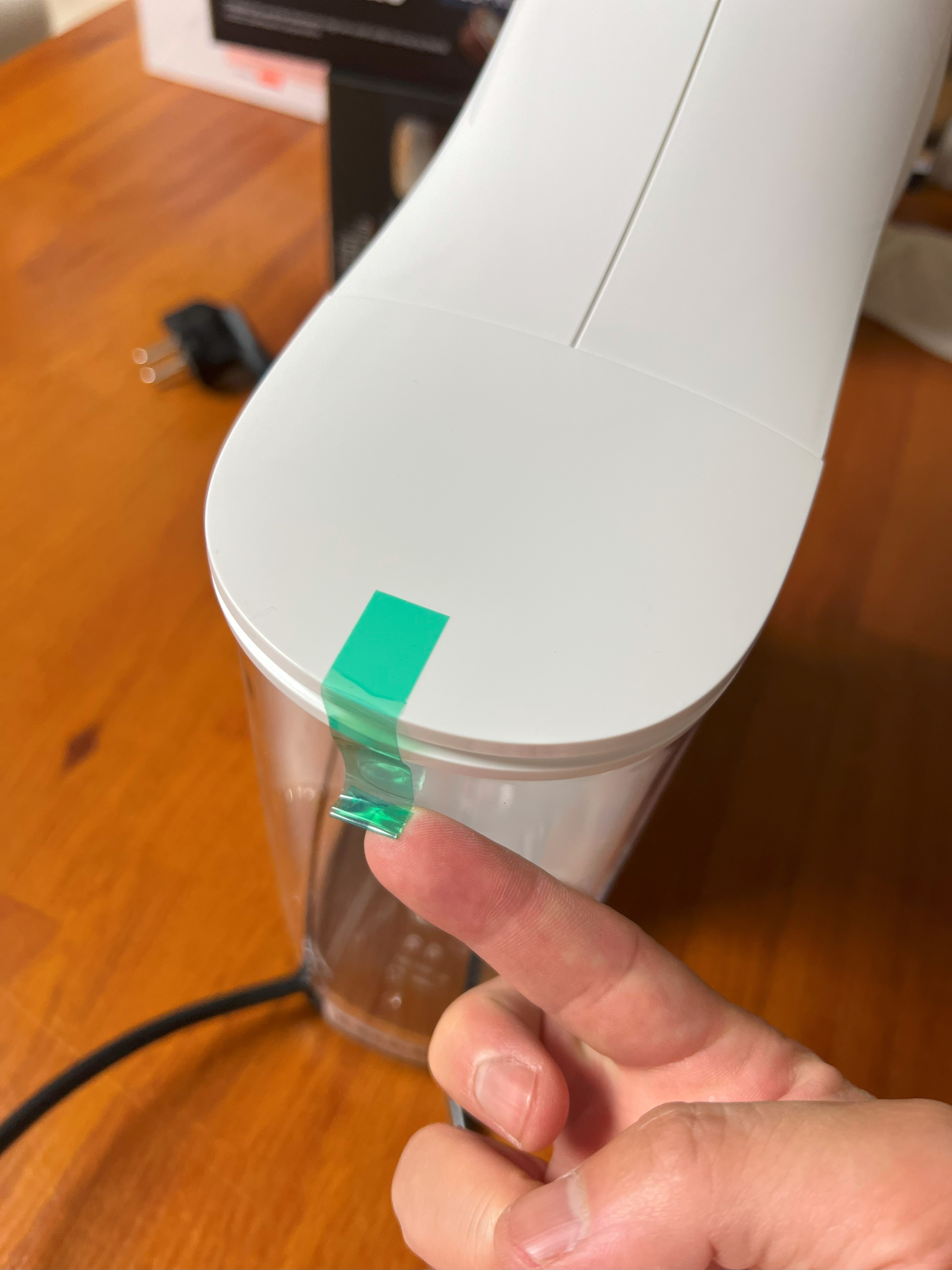 물통부분입니다. 본체 상단에 끼울 수 있는 구멍같은게 있어서 상단 부분을 먼저 맞춘 뒤, 아래 물이 들어가는 부분을 맞추시면 끝이에요. 전 끼우다가 물이 흐를까봐 끼어넣은 후, 물을 컵이나 작은 드립용 주전자를 이용해서 물을 채우고 있어요. 물통에 물을 먼저 채우고 할 때는 넘치지 않게 여유를 두고 끼우시는게 좋을거 같습니다^^