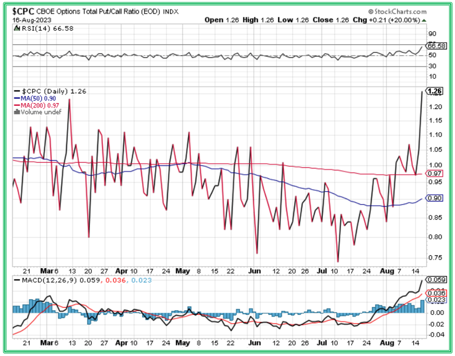 source : stockcharts.com 오메 풋콜레이쇼 변동성지수가 엄청 뛰어 올랐네요. 몇 일 전, 1근처에서 움직이고 있었는데 중국발 경제상황이 하락베팅을 극대화 한 듯 합니다. 작년 자이언트스텝 기준금리 인상을 하면서 시장에 충격을 받았을 때, 풋콜레이쇼가 1.3을 넘었었는데, 지금 수치는 그때 수준에 이르는 변동성지수가 나타나고 있습니다. 차트만 보면 뭔일 날 듯 합니다.....