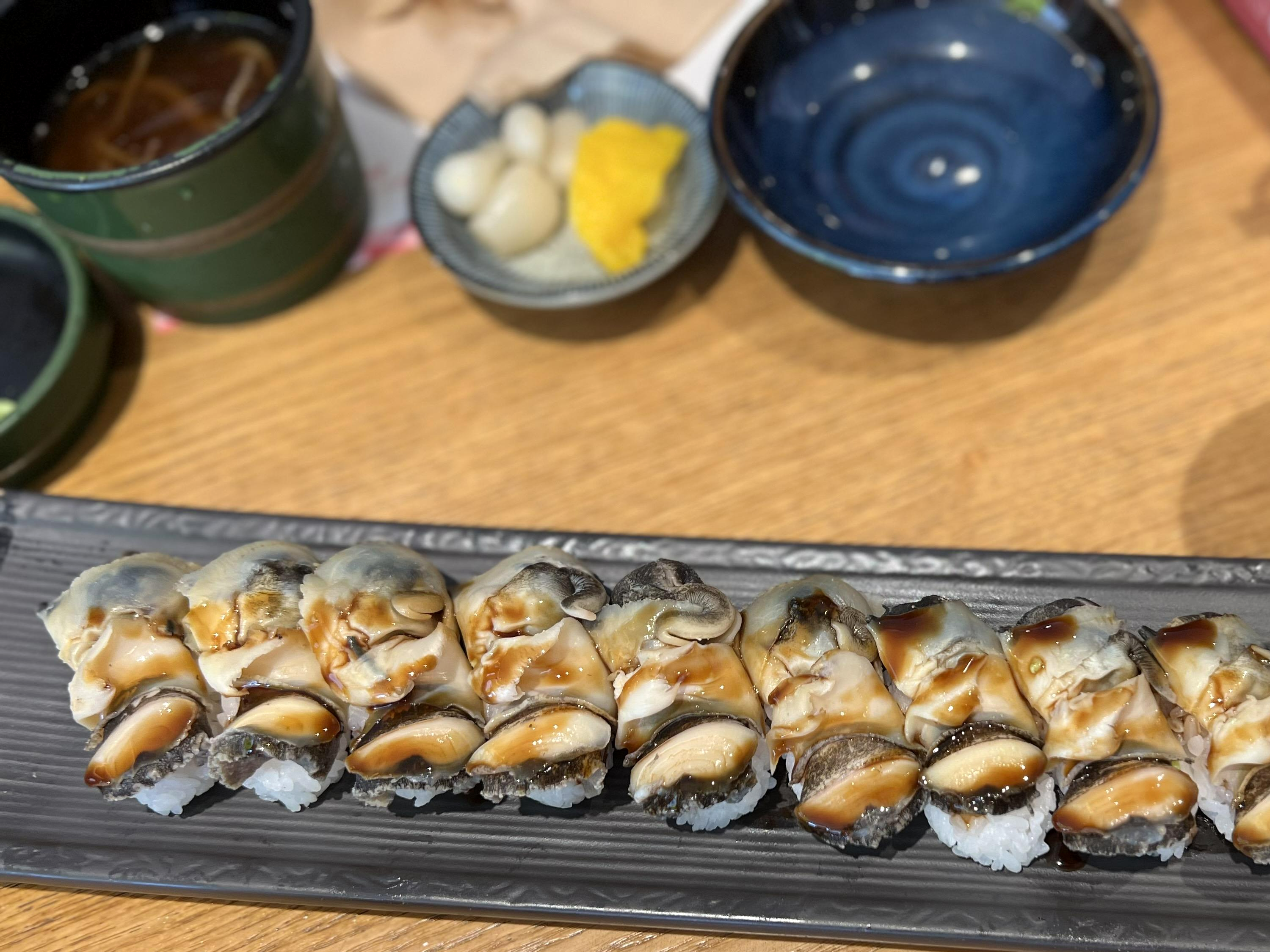 아내가 주문한 소라초밥입니다. 저희가 1년에 몇 번씩 갯벌체험을 갑니다. 올해는 5월인가 갔다가 해초류가 지천에 깔려 있어 낙지/바지락/소라 체험활동을 하지 못했던 기억이 떠오릅니다. 다음달에 시간이 여유롭지 않아서 1박2일로 예정되어 있어요. 작년에 먹었던 낙지와 소라가 정말 맛있었던 기억이 있는데, 다음달에 좋은 수확물이 기대 해봐야겠습니다.