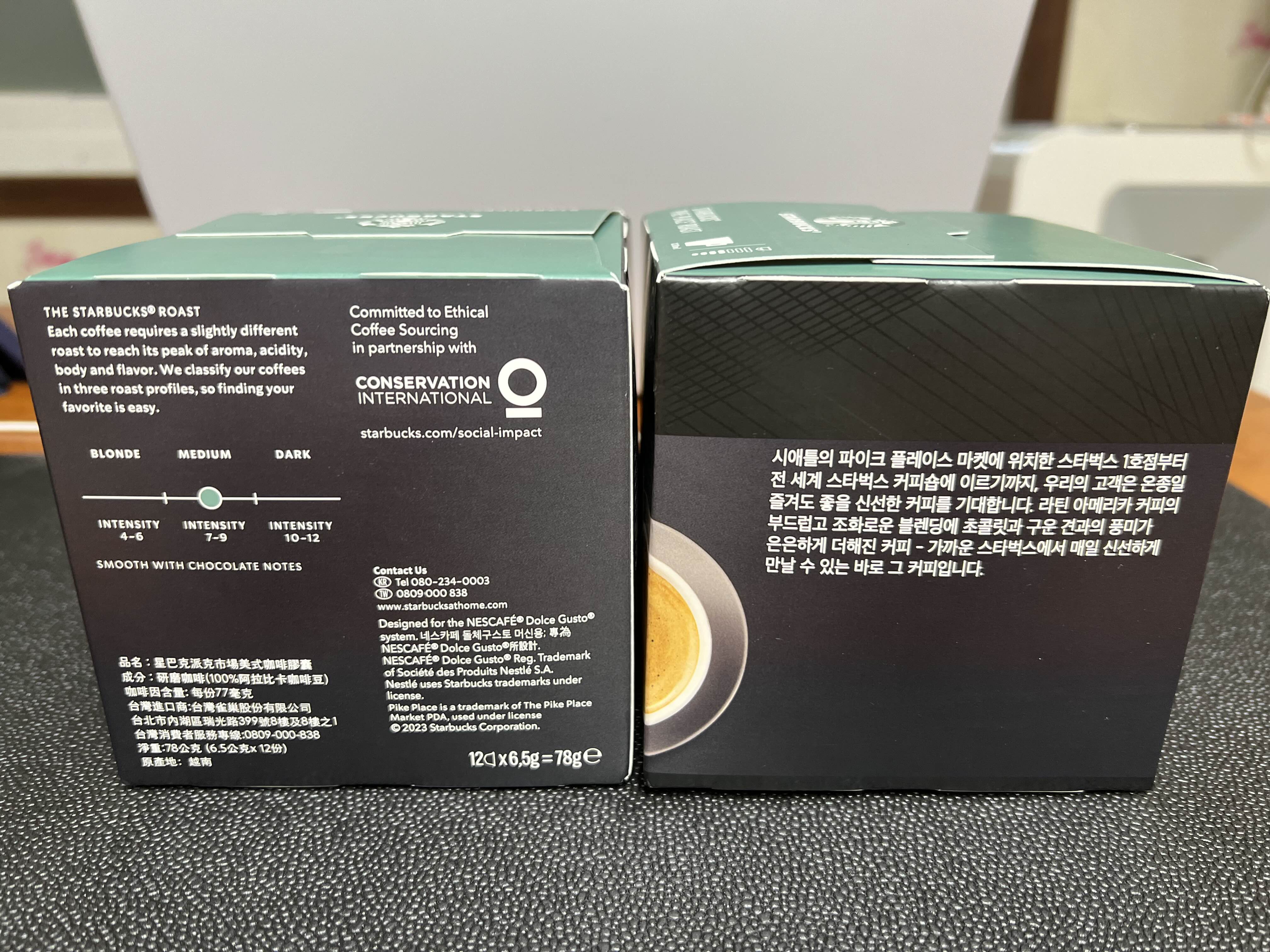 스타벅스 파이크 플레이스 로스트. 커피강도는 7로 표시되고 있습니다. 아직 맛을 먹어보지 못해서 어떨지 궁금한데, 밤이라 먹지 못한다는게 참 아쉽습니다. 맛을 크게 가리지는 않지만 최근 돌체구스토 룽고를 먹었을 때... 이건 제 입맛은 아니었는데, 룽고란 이름이 걸리지만, 개인적으로 다른 맛이길 기대하고 있습니다 ㅋ.ㅋ.ㅋ